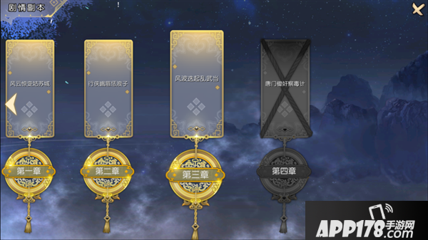 剧情副本目前一共开设4章,每章有4回小副本可供玩家挑战,只有在2分钟内通关副本,方可达成副本三星成就,星数累计达到一定数值可获得绑金、内功丹、秘籍等奖励。