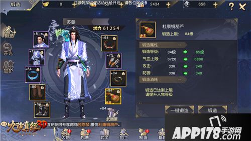 装备系统是提升玩家功力的主要途径,玩家可从提高装备品级、锻造、加护、开光几大方面全面提升装备属性,达到提高功力的目的。