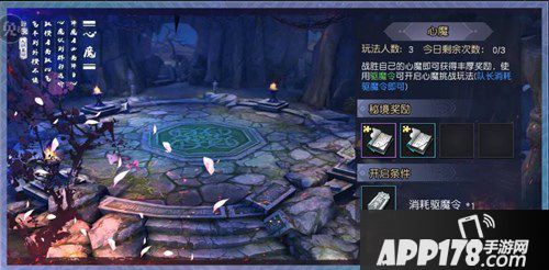 任务简介:每天3次,需要3人组队进入,队长需要携带驱魔令(由周常任务和藏宝图挖掘获取),敌人由三五个杂兵和BOSS组成,对战力有一定要求。
