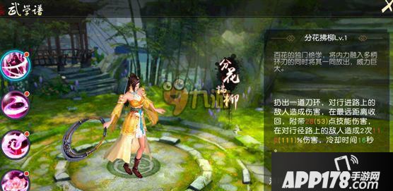 【分花拂柳】扔出一道刀环,对行进路上的敌人造成伤害,在最远距离收回,在对行径路上的敌人造成2次伤害。