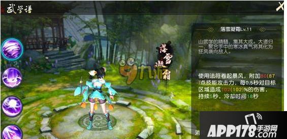 【落雪凝霜】使用法符卷起暴风,每0.5秒对目标区域造成一次伤害,持续5秒。