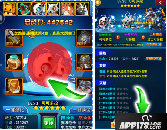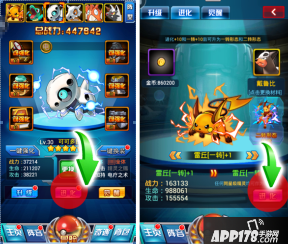 精灵进化:消耗同星级的精灵可以为精灵进化。进化可以大幅提升战力,同时还可以使精灵获得更高级的外观。