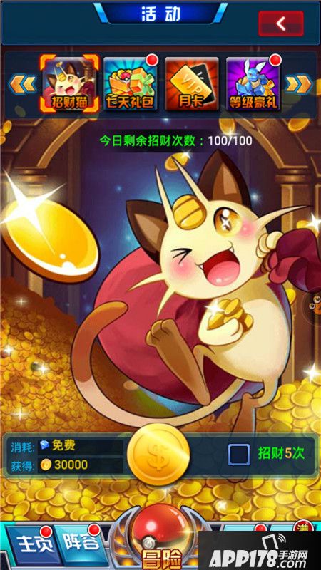 3.招财猫。这是最简单直接的来钱方法,用钻石换钱,不过平民玩家只能招财两次,建议可以充点小钱,性价比更高。
