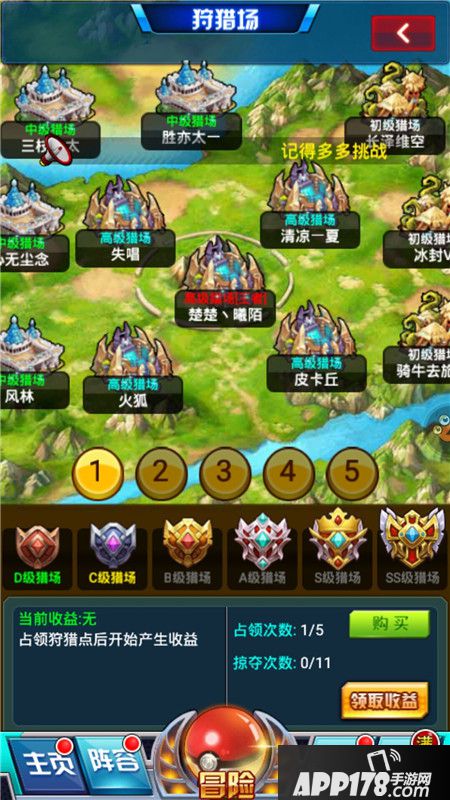 6.疯狂狩猎场,这个来钱也很快,不过要随时记得看看,可能一不小心就被人攻占了,另外记得,在战斗力提升之后,要多试试冲级更高级的狩猎场。