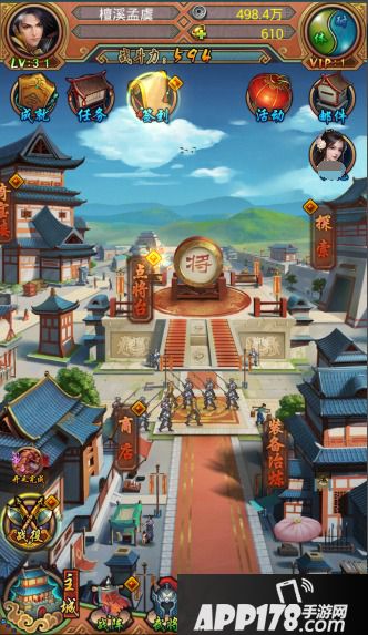 游戏整体画面呈现出了一个主城的全貌,威严壮丽。每个房屋都会有不同的标识,方便玩家查找。主城中戒备森严,不时有士兵在此巡逻,仿佛自己也置身于主城当中。