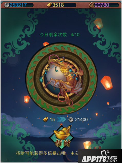 招财:招财可以通关少量元宝来换取银两,每天的换取次数会根据VIP等级来调整