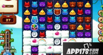 2、在49步之内消除27个云端粉红的动物,我们可以看出分布还算是比较集中的哈,所以我们要使用连消的方法来解决。