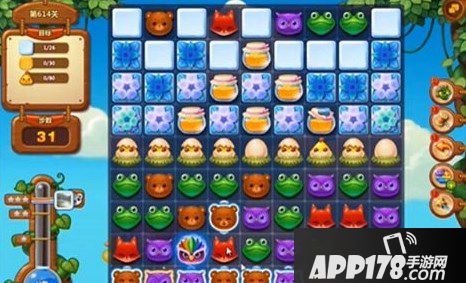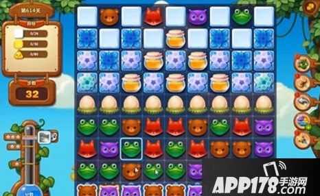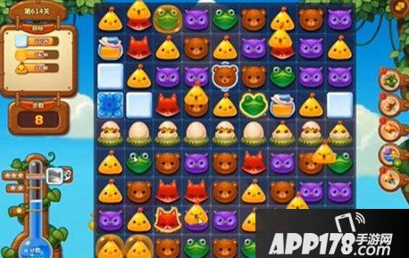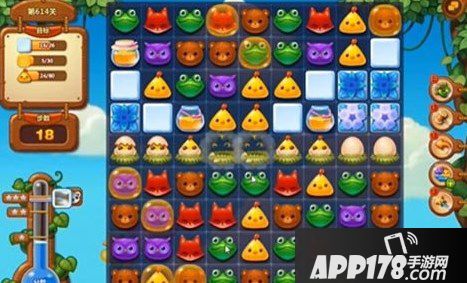 开心消消乐614关鸡蛋孵化过关技巧。在614关的时候,主要的目标是关卡中的小鸡,蜜罐还有雪块。但是在消除的时候,我们注意到整排的小鸡出现在关卡中,这样让关卡出现不连接性,同时下侧还有大量的直线特效与炸弹特效的存在。
