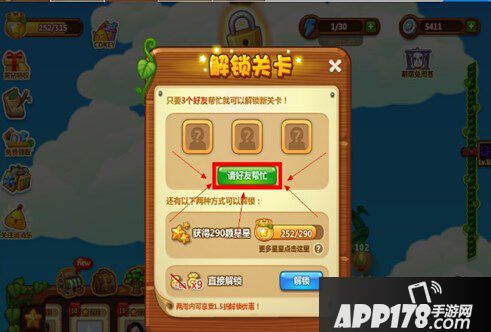 在开心消消乐中我们有时候需要三个好友帮助才能解锁新的关卡。