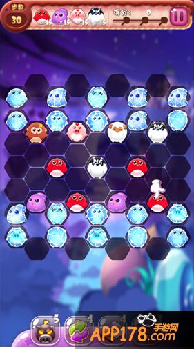第三十关卡(为什么是第三十,因为我们今天说冰层),冰层上又覆盖了厚厚的一层冰片,想要消除冰片,要么连击要么使用炸弹,炸弹的效果是可以在有宠物的冰层基础上消除一次。另外图片上还会出现三个绿色果冻的东西,这个是炸弹不能消除的,你好不容易搭建好的连击,很有可能在它随意的跳动下被阻碍了。不过没有关系,你只要移动一个宠物,果冻自然就会跳过去,这样你就解开了之前的连击。