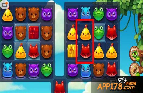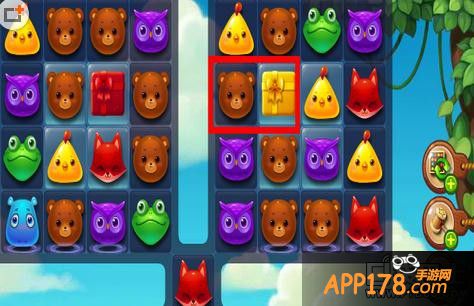 我们先点击并换一下熊和黄色的礼包,这样,可以得到一个白光熊,用来大量消除竖排的冰。