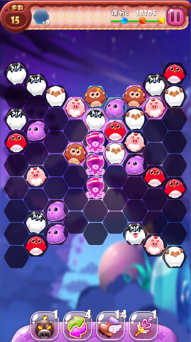 虽说游戏的难度在增加,不过章鱼哥的出现给游戏带来莫名的喜感,想要解救小动物们必须要解开冰层,在空间和步数的限制下,小编建议先使用2颗小型炸弹去解开冰层下的动物,因为中间三排是需要消除的格子和被困的动物。