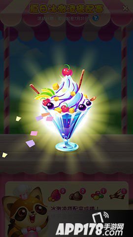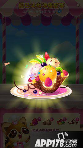 鲜果烈焰,水果,巧克力奶油,是这个冰淇淋的主要原料。搭配完成之后,就可以得到奖励了。