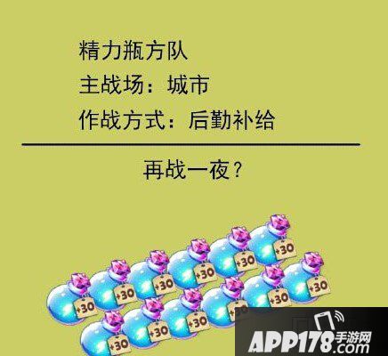 如果自己没有精力值,怎样继续的作战消除呢。我们的精力瓶方队就是给我们进行后勤补给的。继续战斗,不要停歇就是我们的作战宗旨。