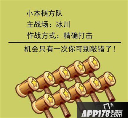 小木追方队是精准打击,遇到障碍直接敲打,但是只能有一次机会,所以要慎重使用呀。精准打击的小木追方队,是我们突击过关的好帮手。