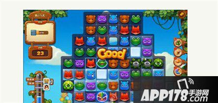关卡在开始的时候,有3个树藤与毛球的存在,冰块全部分布在下方,我们在开始消除的时候,从下方开始消除。扩大空间的时候,还可以自由下落动物,这样动物在下落的时候也是可以进行消除的。等雪块全部消除的时候,就会有更大的空间。但是树藤也会蔓延,我们要利用树藤收回来的时候下落消除。