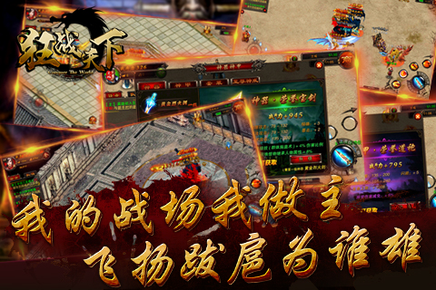 战能铁血挥大刀,进能欺身战群雄,退能提腹迎宿敌,一将功成万骨枯,铁血铮铮几人回,上能翱翔视群英,下能驰骋征八方。勇士,战斗否?厮杀否?战,战天下!《狂战天下》重现了人人身披战甲,尽情厮杀,奋勇杀敌的情景。丰富多彩的玩法系统,阵营战,神识之塔,三足鼎立,BOSS挑战,五行轮回等等。各种玩法让你根本停不下来。绚丽多彩的翅膀、勇者无畏的勋章、气势逼人的坐骑更是让你爱不释手。