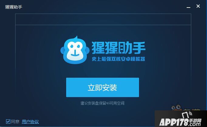 第一步,下载猩猩助手手游模拟器最新版本,双击安装辅助