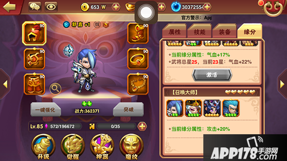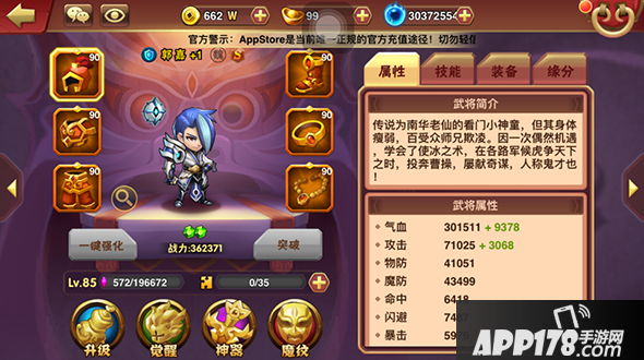 每个神将的强弱要用队伍来配合的!合理搭配阵型,可以不断通过好友切磋来尝试不同的阵型,希望大家能搭配出属于自己的阵型。