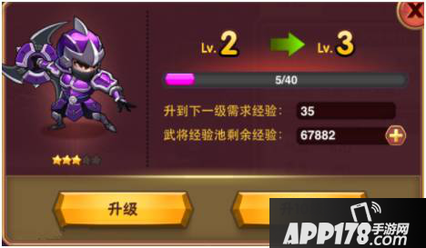 b. 无论低星的武将还是高星的武将,都可以通过获得自身的武将碎片进行升星,目前最高可升级到5星。