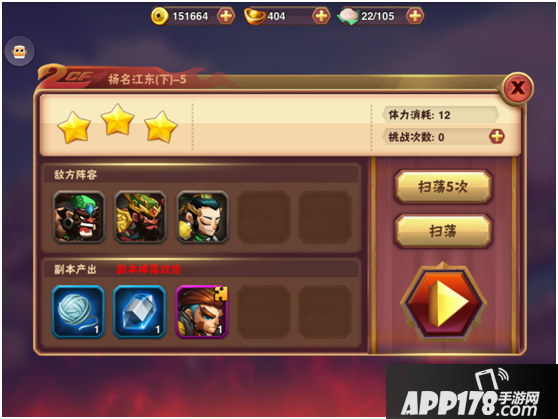 b. 扫荡副本可以获得武将经验,这些经验会保存在经验池中,玩家可以根据自己的需要,给喜欢的武将分配经验。