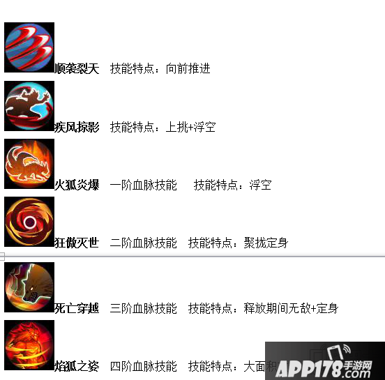 使用顺袭裂天捕捉到敌人,然后释放狂傲灭世使敌人定身,平砍5下左右释放疾风掠影使把敌人挑起并浮空,在释放精灵技能螺旋波延长敌人浮空时间,然后顺袭裂天CD基本已经冷却,再次释放顺袭裂天,接着狂傲灭世让敌人定身,再释放疾风掠影,两套连招完成敌人基本会进入倒地伤害霸体保护,此时就适当跑位等待下次捕捉敌人!