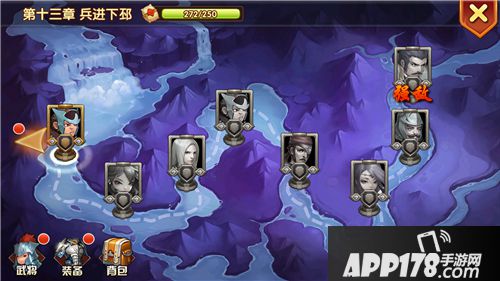 游戏中,可通过点击左右箭头切换章节,向右最高只能到当前最新章节,即无法查看尚未达到的章节。尚未击败本章BOSS时,不能开启下一章。若玩家主公等级尚未达到开启下一章要求时,不能点击下一章的箭头。