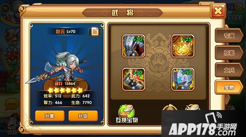 宝物是可以穿戴和卸载的流动性质装备,它可以给任意武将佩戴,不管是前期还是后期,宝物都能在极大程度上决定着一个武将的强弱。但是,每个武将最多只能佩戴4件宝物,并且同类型的宝物是不可以重复携带的。