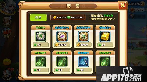 市集中出售着各种游戏中常用的道具、材料,除了每天特定的时间市集会自动刷新商品,玩家也可以手动刷新商品。