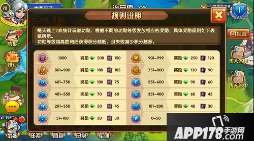 l 每天晚上10点根据个人功勋发放功勋奖励,可获得大量水晶和技能卡。