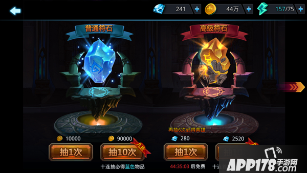 建议0元玩家积蓄蓝钻达到一定数量进行英雄符石十连抽,有更大几率获得好英雄,或者在【特卖】中直接购买所需英雄。