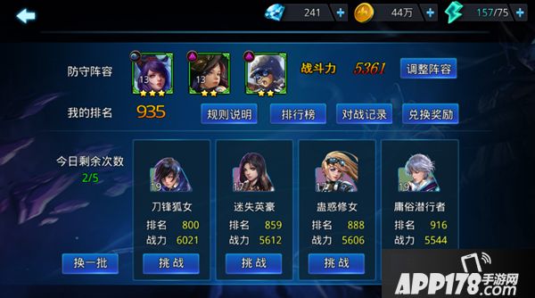 竞技场:在试炼的竞技场之中,每日可以参与5次排名争夺赛,每次排名提升都会获得系统邮件发来的钻石奖励,而后根据排名,还会每天获得一定量的钻石。可以说是0元玩家必须认真对待的积累之所。