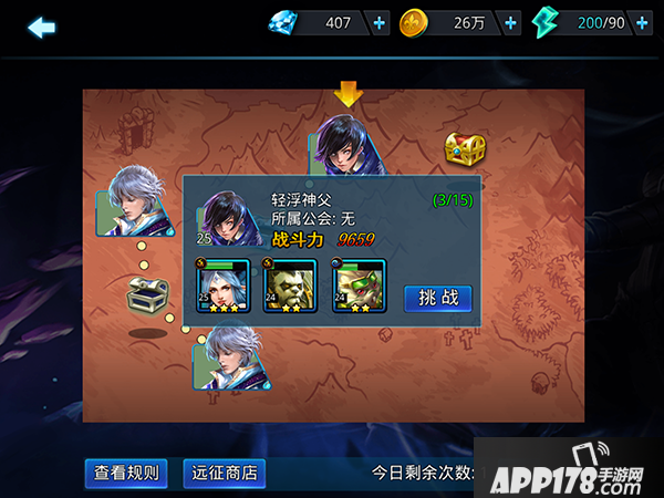 9、每天可以重置1次远征,重置后从第1关开始,我方英雄都会满状态复活。