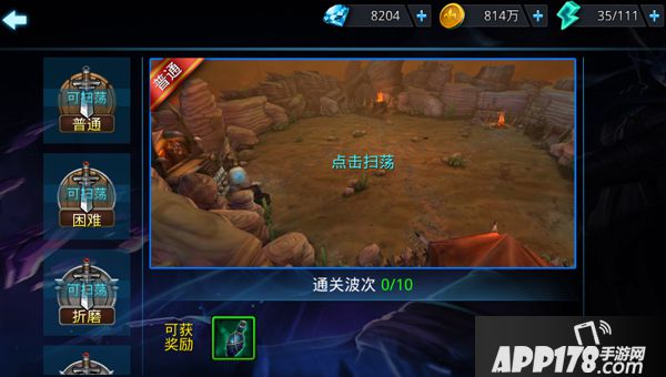 深渊血战是一种限波次的生存玩法,共有四个难度的不同挑战。玩家选择上阵英雄之后,守住10波怪物的攻击即可获胜,所有出战英雄死亡则为挑战失败。根据等级的提升,玩家最多可以上场8个英雄,其中三个为主要英雄,剩下五个则是替补英雄,在主英雄阵亡后依次上场替换。已通关过的难度,之后可以进行扫荡。可以说,深渊血战这种毫无掩体完全赤裸的血拼模式,找回了当年RPG的热血风采。
