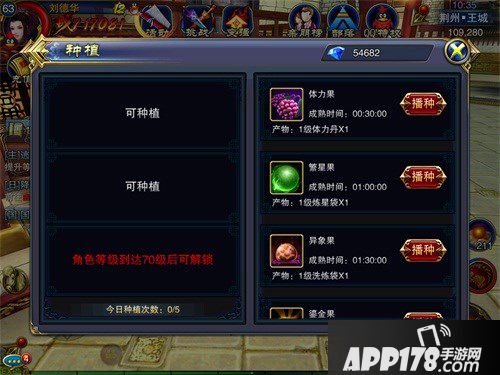 玩家们每天可以种植5次,到70级的时候可以解锁6次。播种的种子,可以等到成熟后来收取,也可以直接用钻石收获。