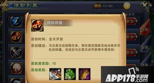 这个任务有点不一样的是,接取任务后并不能跟其余任务一样直接获得活跃度,而是在击杀怪物后才能获得。完成之后,回到本国“左慈”那里就可以领取经验和黄巾宝藏等了。玩家们记得每天都要去完成这个任务哦!