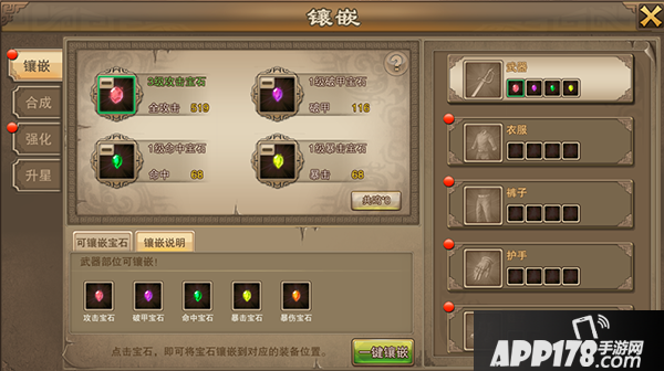 每个部位可以镶嵌4种宝石
