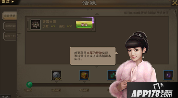 一开始跟着新手指引做主线任务,游戏完全还原电视剧剧情,大家跑任务的同时还可以体验一下惊险刺激的探秘之旅,到27级的时候是一个阶段点,这里就需要我们打开活跃面板去参加齐家当铺的副本。