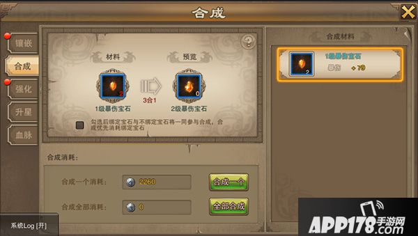 v 宝石是可以合成的,在合成界面使用3个宝石就可合成一个更高等级的宝石。