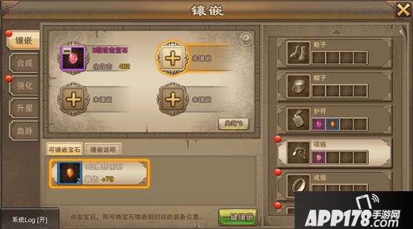 v 宝石是提升战斗力最快的方式。将宝石镶嵌在装备上即可提升相应的战斗力。