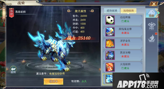 幻化界面可查看活动坐骑样式和各阶不同坐骑样式