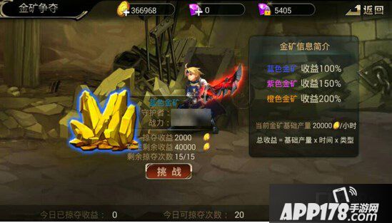 矿区有限,可以点击矿区使用“挑战”功能掠夺金币;每日可掠夺次数有限,且一个矿只能“挑战一次”。
