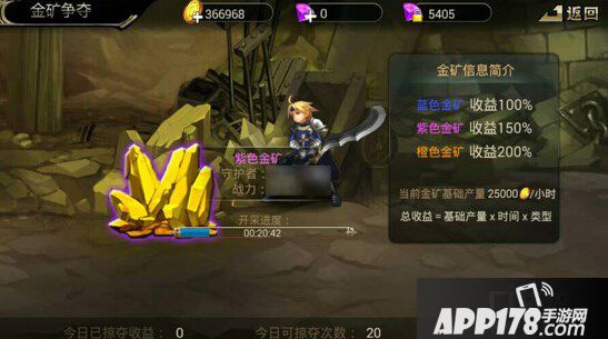 系统消息会不定期刷出副本金矿区。可以开采到金币按照额度每小时从几千到几万不等,可以开采两个小时。还有矿种加成:橙色双倍、紫色1.5倍。闲时可以去占矿,开心做矿主。