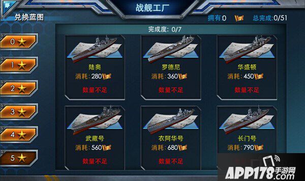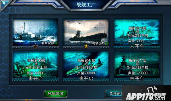 图纸兑换系统中拥有大量的战舰,玩家可以使用对应的星级图纸碎片来兑换战舰蓝图,从而建造新的战舰