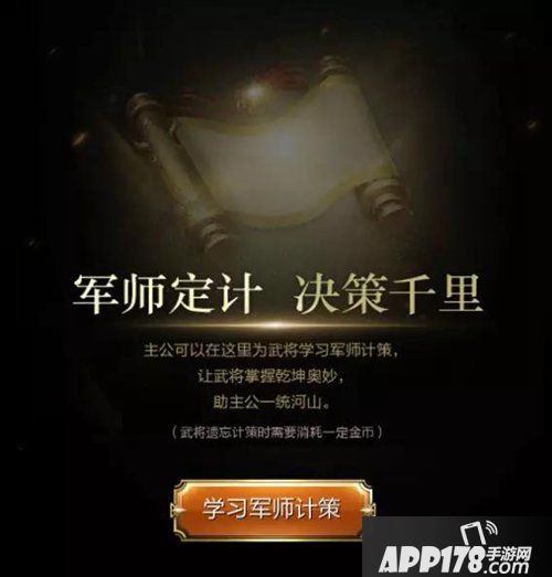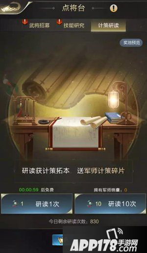 在点将台中,主公们可以使用【军师锦囊】来研读计策,获取【计策拓本】,并赠送【军师计策碎片】,合成完整的【军师计策】。