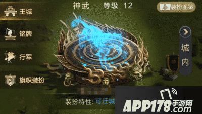 拥有“可迁城水上”特性的装扮,在使用后便可通过高级迁城迁移到水面地形。在水面地形时,不可以更换装扮。若要更换装扮,需迁城到普通地形再进行更换。