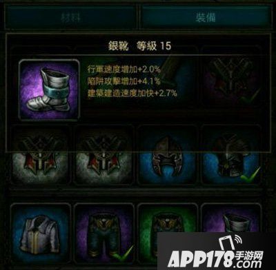 在游戏中银靴这一个装备可以增加玩家部队的行军速度百分之二,提升陷阱的攻击百分之四点一,增加建筑物的建造速度百分之二点七。这样就让玩家可以在战斗中更快的接近敌方的目标,让玩家在游戏中可以更好的守护城池,让自身的发展速度变得更快。