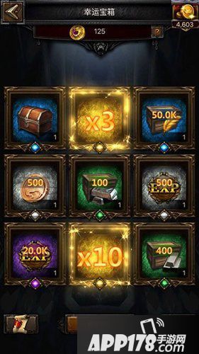 在玩家进行转盘抽奖,并且抽中宝箱的时候,一开始就能看到宝箱中包含了哪九个道具。而根据这九个道具的内容将会决定玩家的宝箱抽取策略。宝箱中可能出现的道具有铜币、经验值、资源箱、装备素材、金币以及翻倍几种,其中最有价值的自然是金币了,当然大数量的经验值或者高等级的装备素材也都是好东西。