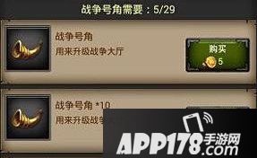 玩家想要获得大量的战争号角最好的方法就是使用金币在商城中购买,在商城中战争号角五金币一个,建议玩家在购买战争号角的时候打包购买,这样花费的金币更少,获得的战争号角更多。另外玩家还可以在城堡商人和每日在线奖励获得这一个道具。
