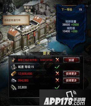 另外城墙这一个建筑是玩家升级城堡必备的建筑,玩家只有将城墙的等级提升到和主城等级相同的程度,玩家才能够进行城堡主城的升级。所以当玩家的城堡等级提升后,玩家要第一时间提升城墙的等级,这样才能够快速的提升自身城堡的等级。
